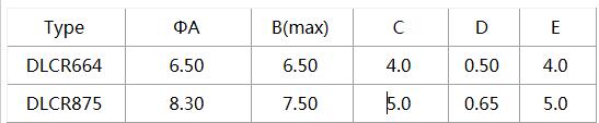 四、工字型電感封裝尺寸列表: